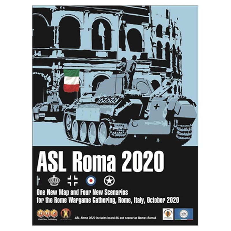 ASL Roma 2020 is a map and scenario pack for Advanced Squad Leader produced by MMP and the joint efforts of Federazione Italiana Wargame and ASL Italia for the Rome Wargame Gathering in Rome, Italy, October 2020. The pack contains a new 8" x 22" geomorphic mapboard (86) and four new scenarios by designers Sebastiano Caltabiano, Paolo Cariolato, Ken Dunn, and Pete Shelling with actions featuring Italian, Greek, German, French Partisan, New Zealand, and American forces.
