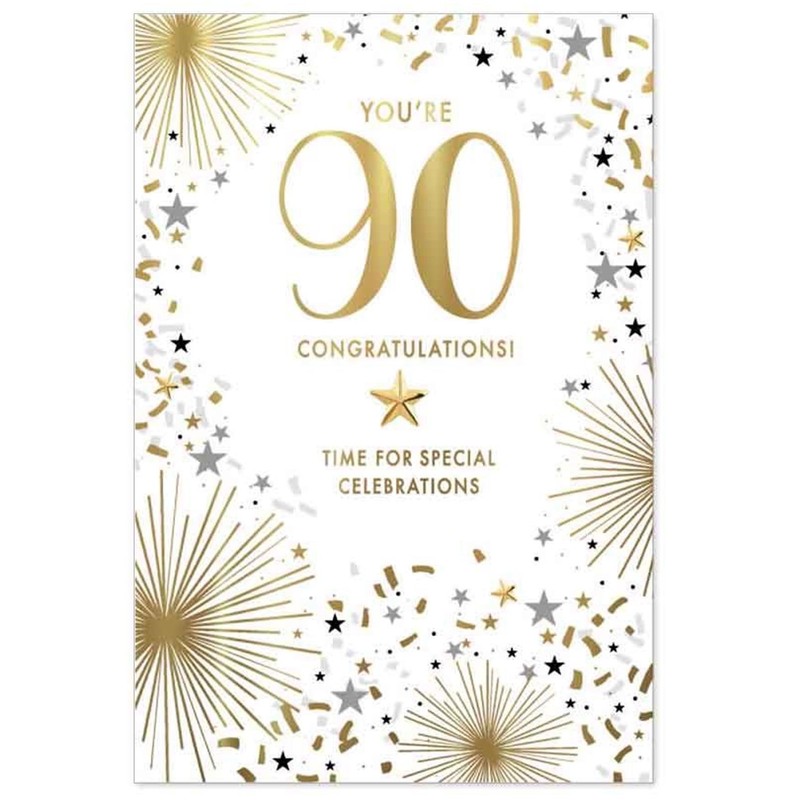 Age 90 Birthday Card - Mens Male Script 90th- Size: 7.5" x 5.25" MB