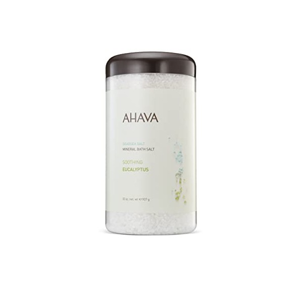 AHAVA Dead Sea Mineral Bath Salt, Soothing Eucalyptus - Intense Relaxation for Body & Mind, Elevates Moisture, Softens & Eases Sore Muscles, Enriched by Exclusive Dead Sea Salt & Osmoter blend, 32 Oz