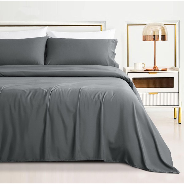 AiAngu 4 Piece Sheet Set - Soft Microfiber 1800 Thread Count Luxury Egyptian Sheets, 16 Inch Deep Pocket, Extra Soft & Wrinkle Free Sheets(Queen,Dark Gray-26)