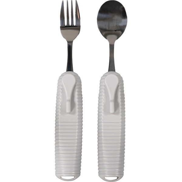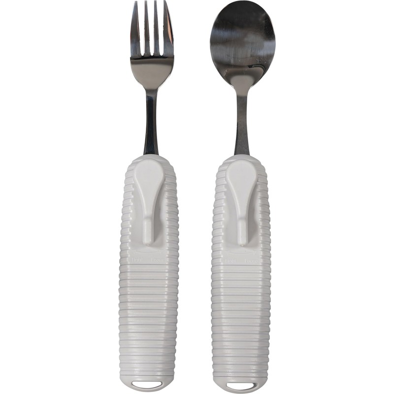 Aidapt Adaptive Large Handled Fork and Spoon Set Utensils with Multi Angled Head Adjustment for Use Arthritis, Disabled, Elderly