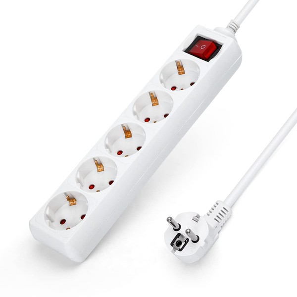 Aigostar Power Strip 5-Way with Switch Table Socket Child Lock 5 m Cable, White