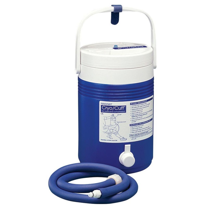 Used with an Aircast Cryo Cuff device or Donjoy ArcticFlow Wrap (that wraps around the body part to be cooled) to provide the ultimate in ice therapy/cryotherapy. When used with an Aircast Cryo Cuff or Donjoy ArcticFlow Wrap device, it combines the therapeutic benefits of controlled compression to minimise bleeding and swelling, and cold to minimise pain.