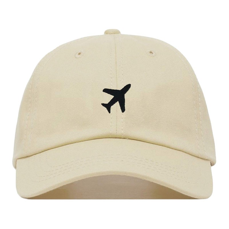 Airplane Baseball Hat, Embroidered Dad Cap, Unstructured Soft Cotton, Adjustable Strap Back (Multiple Colors) (Beige)