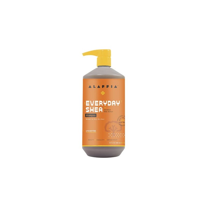 Alaffia's unscented shampoo is handcrafted with fair trade and unrefined shea butter, shea leaf and virgin coconut oil, and is unscented for sensitive scalp and skin. For every day use on normal to dry hair.