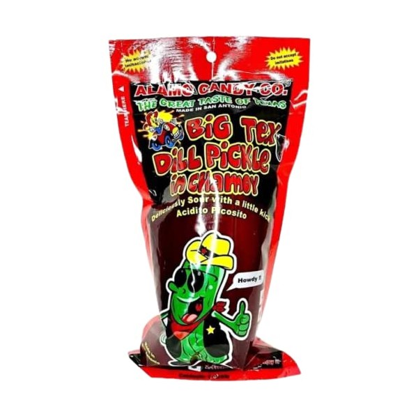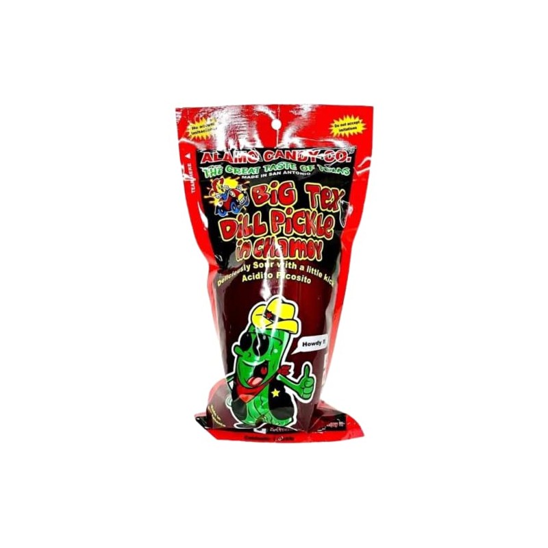 Do not accept imitations. The great taste of Texas. Big tex dill pickle in chamoy. Deliciously sour with a little kick. Howdy! Go texan. Facebook Made in San Antonio