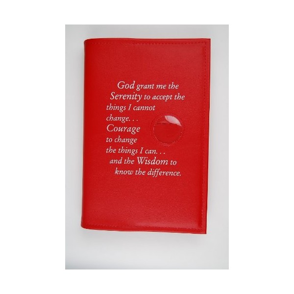 Alcoholics Anonymous AA Big Book Cover Serenity Prayer & Medallion Holder Red