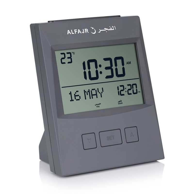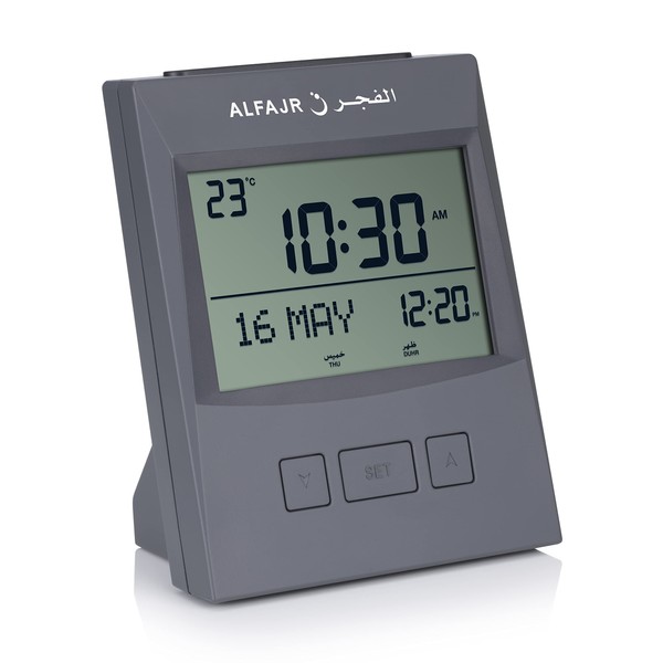ALFAJR Azan Clock CS-13 Automatic Athan Prayer Alarm Table Clock, Grey