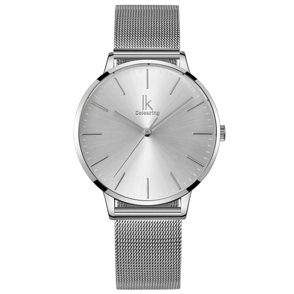 Alienwork IK Minimalist Women's Watch, 36 mm Diameter with Mesh Strap, silver / white