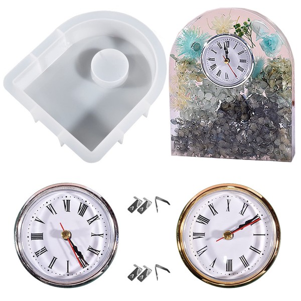 - Arch Clock Resin Mould: Package includes 1 PCS desk clocks silicone molds for resin, 1 PCS gold clock insert, 1 PCS silver clock insert.