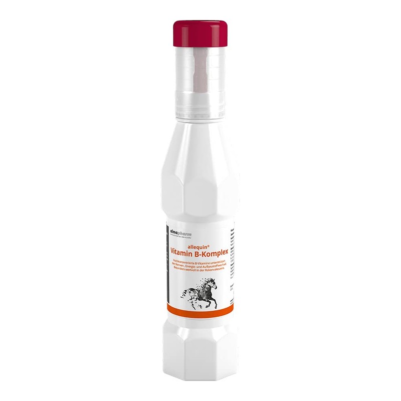 - almapharm Allequin vitamin B complex is a liquid supplementary feed for horses to compensate for deficiency with vitamins of the B complex