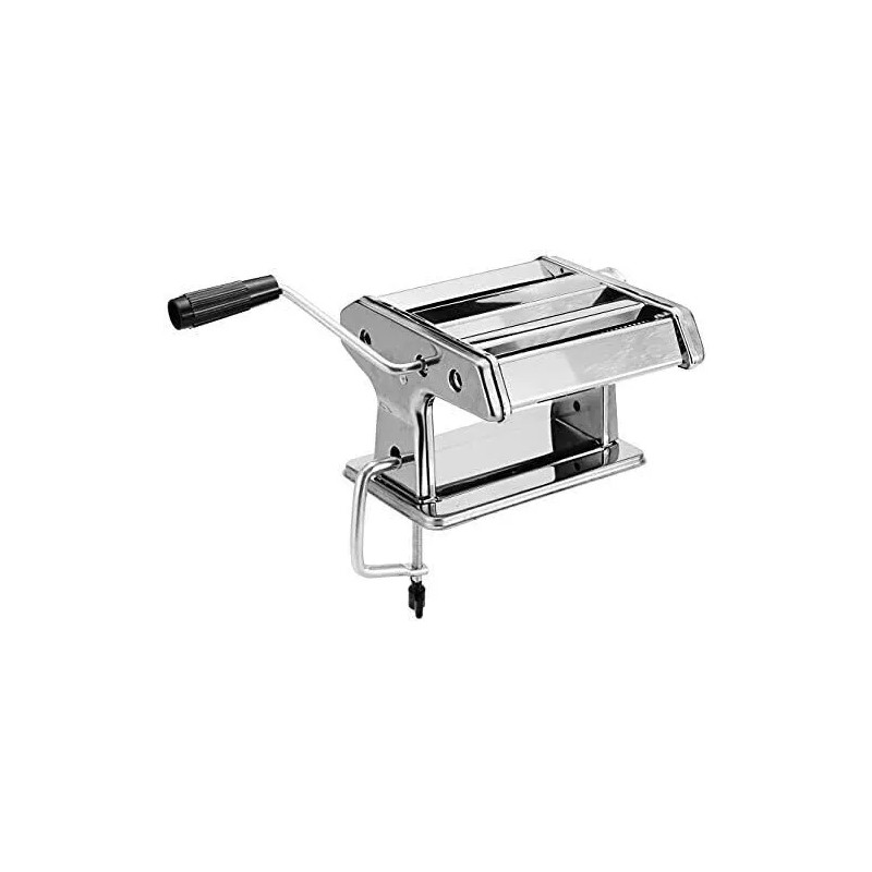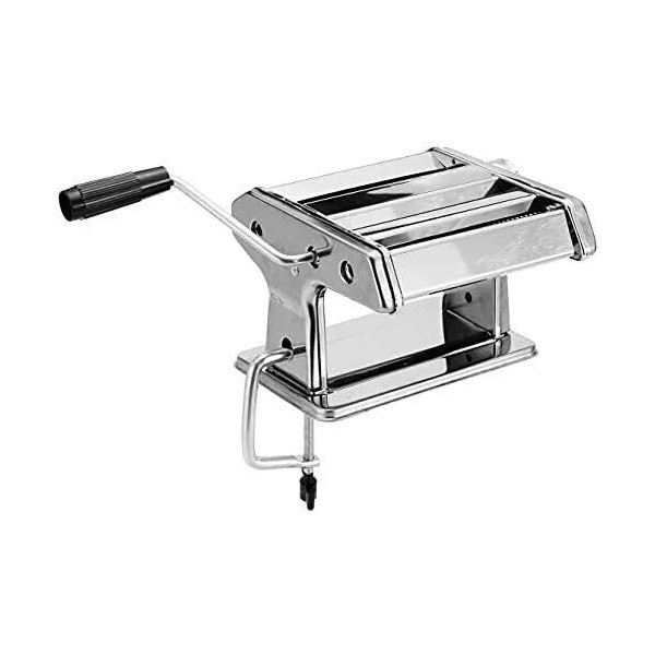 Product Description Manual about 6" wide all metal Professional Grade Pasta,Spaghetti, Fettuccine, Linguine, Tagliolini Maker. Get ready for the exciting complements for your fresh homemade pasta with this durable stainless steel pasta maker. It's very easy to use; just clamp your pasta machine, choose your settings and you are ready to start. You can make all kinds of pasta such as fettuccine, spaghetti, and agglutinate Pasta,Spaghetti, Linguine, Tagliolini. As you can see in the pictures, it has three slots. First one is to make sheets from the dough which you can do lasagna with. The second slot (middle slot) is for wide pastas such as fettuccine and it will give you about 1/4 inch wide. The third slot will give you about 1/8" wide for smaller sizes. They do not come with any instructions but there are so many how to videos of making pasta manually online. Supplies are short so buy now and enjoy for years to come. Thank you