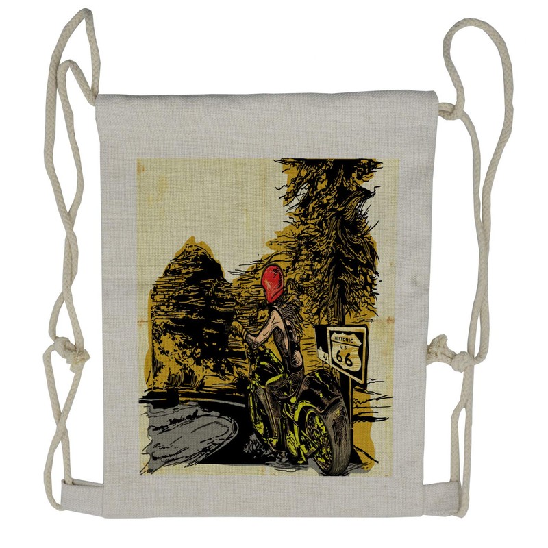 Ambesonne Motorcycle Drawstring Backpack, Girl on a Chopper, Sackpack Bag