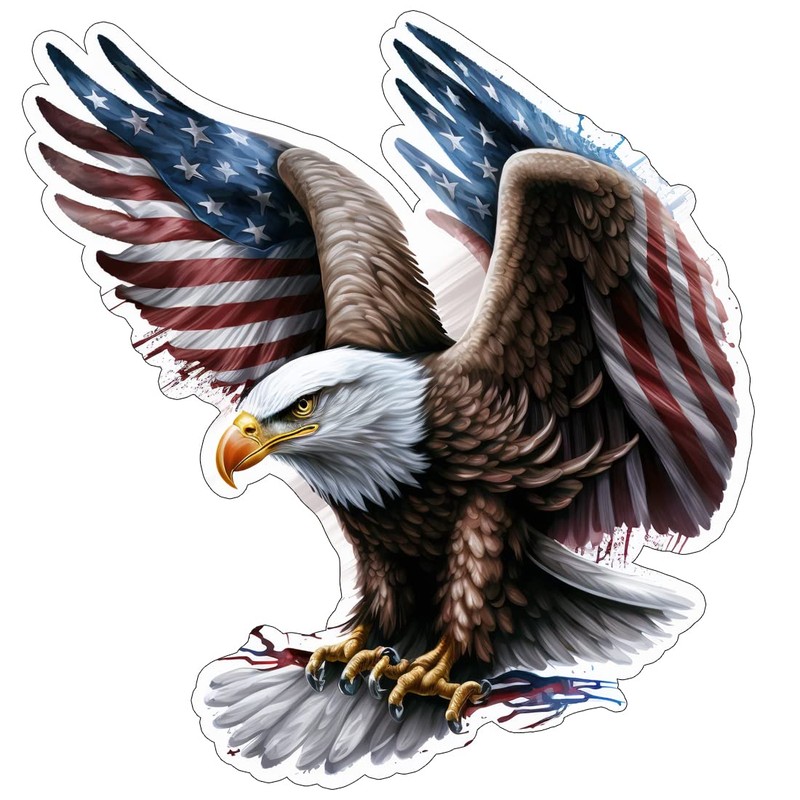 Introducing the American Eagle sticker, a bold and patriotic design that is perfect for showing your love for the United States of America. This high-quality sticker features a detailed image of a majestic eagle, with its wings spread wide and its head held high. This sticker is perfect for decorating your car, laptop, or water bottle, and is a great way to show your pride and support for your country. Made in the USA from durable, weather-resistant vinyl, this sticker is sure to last for years to come. Show off your American spirit wherever you go!