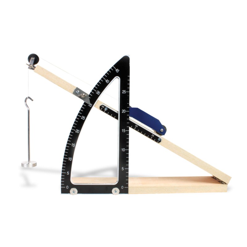 - The wooden inclined board measures 60cm length by 10cm width, and can be set at any angle between 0 and 45 degrees