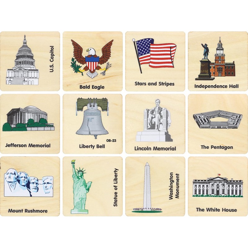 - 24 pieces, 12 different American symbols.