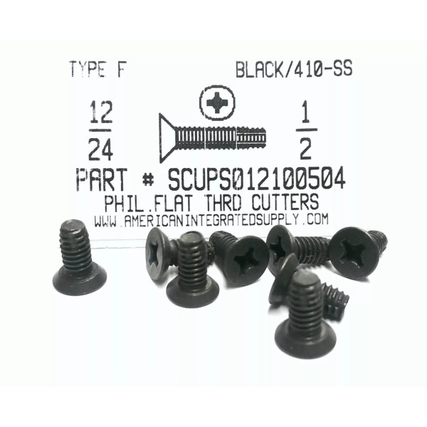 AMERICANINTEGRATEDSUPPLY.COM #12-24x1/2 Undercut Flat Ph Thread Cutting Screws Type F 410-SS Black Oxide (25)