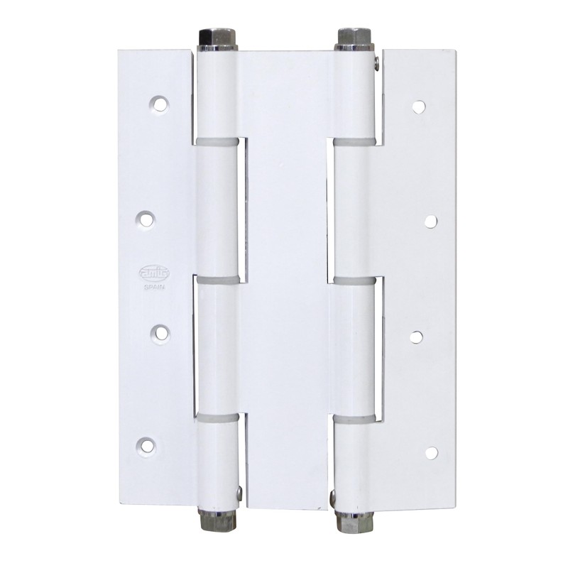 • DOUBLE HINGE This double acting hinge is a crucial element for the operation of entrance and passage doors. It has a universal system of 2 blades, with 8 recessed holes.