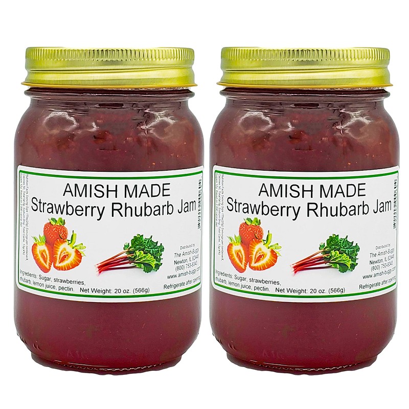 Amish Strawberry Rhubarb Jam - Two 16 Oz Jars