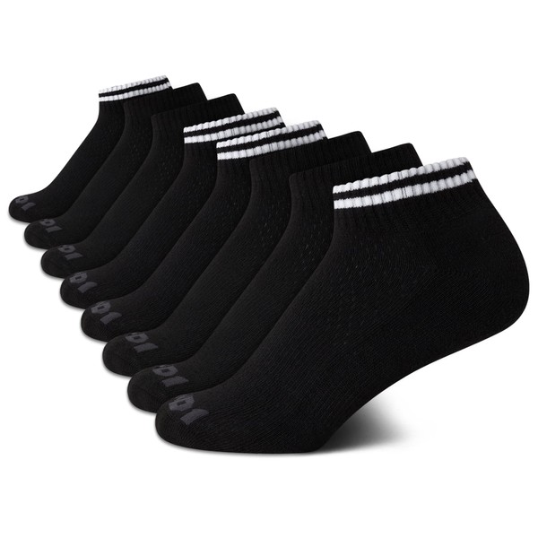 AND1 Boys' Socks - Athletic Cushion Quarter Cut Socks (8 Pack), Size Small-Medium, Solid Black