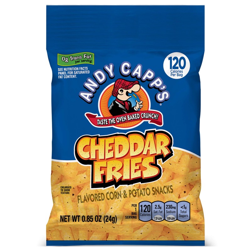 - Andy Capp's Cheddar Fries look like fries and crunch like chips, bringing out the kid in all of us