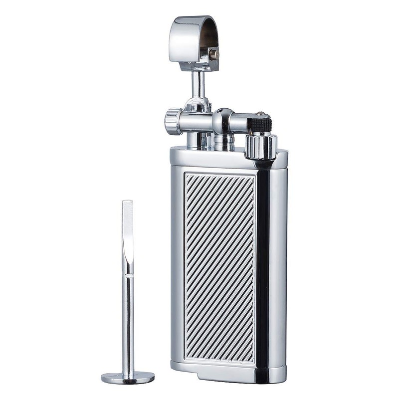 Angled Soft Flame Antique Style Lift Arm Butane Refillable Lighter with Tamper & Pick (Chrome)