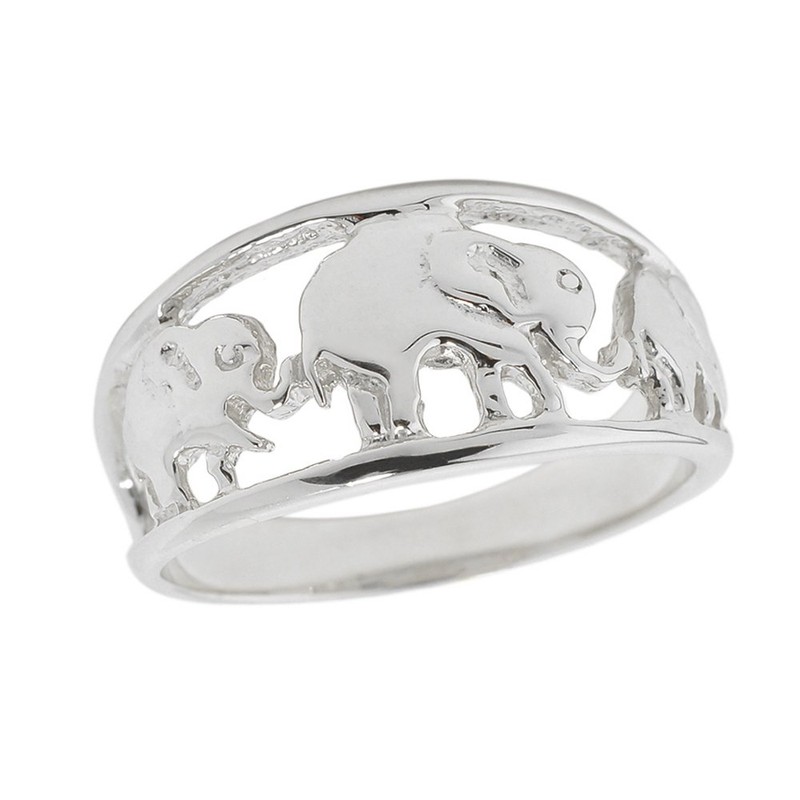 Animal Kingdom Solid 925 Sterling Silver Open Design Band Three Elephant Ring (Size 8.5)