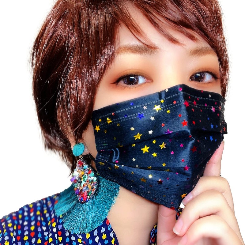 ■Star Pattern Black Mask, Sparkling Rainbow 5 Layer Non-Woven Mask, Unisex, Individually Wrapped Over 99% PFE.