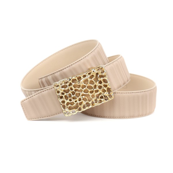 Anthoni Crown Unisex Leather Belt, beige