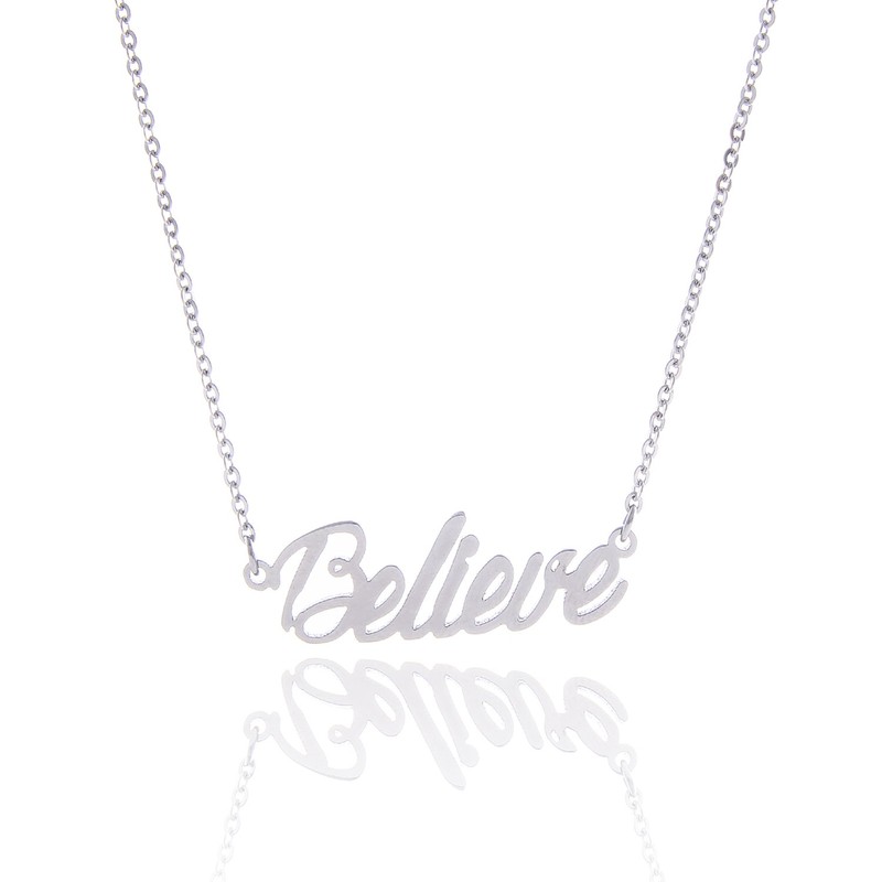AOLO Tiny Believe Monogram Script Necklace Silver