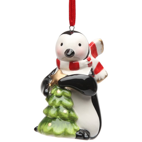 Appletree Design Penguin with Green Christmas Tree Ornament, 3-1/2-Inch Tall, Includes String for Hanging