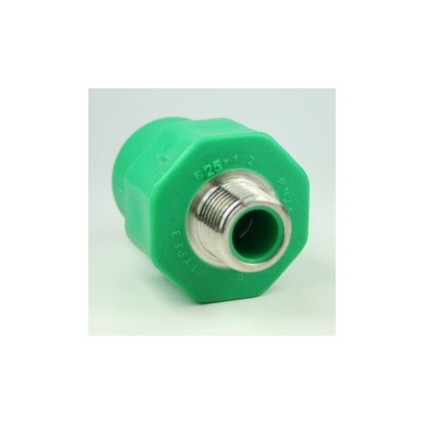 Aqua-Plus PPR Pipe Coupling AG d = 25 mm x DN 15 (1/2 Inch) Green