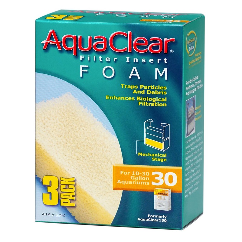 AquaClear 30 Foam Filter Inserts are replacement filter media for the AquaClear 30 Power Filter. The AquaClear 30 Foam Filter Insert is a mechanical filter media that effectively removes particles and debris from aquarium water. It also prevents particulate waste from prematurely clogging other media in the filter. Primarily a mechanical filtration media, it also provides powerful biological filtration as friendly bacteria eventually grow inside its pore structure. Exclusively designed for the AquaClear 30 Power Filter, the Foam Inserts are safe for fresh and saltwater aquariums. AquaClear creates a wide variety of products for freshwater tanks such as fish tank accessories, fish tank decorations, and aquarium filter media that is perfect for large and small fish tanks.