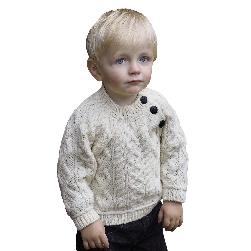 Aran Crafts Baby Traditional Irish 3 Button Crew Neck Sweater (C4548-6/12-NAT)