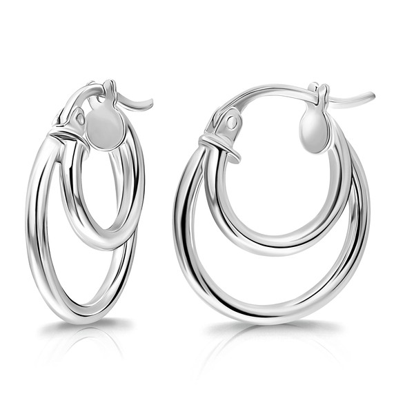 arete de aro de plata de ley con acabado pulido, doble círculo, redondos, 15 mm de diámetro. Plateado