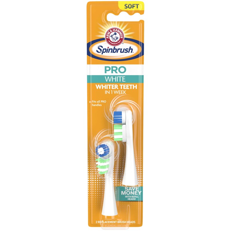 Arm & Hammer Spinbrush Pro Series White Battery Toothbrush Refills (Replacement Heads), Soft, 2 Count