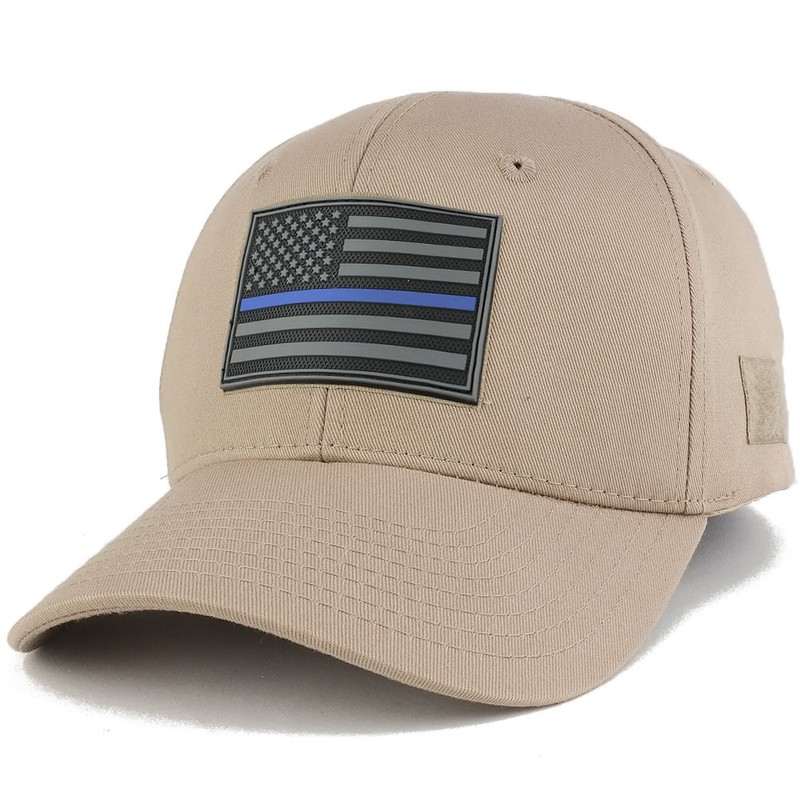 Armycrew Thin Blue Line USA Flag 3-D Rubber Tactical Patch Adjustable Structured Operator Cap - Khaki