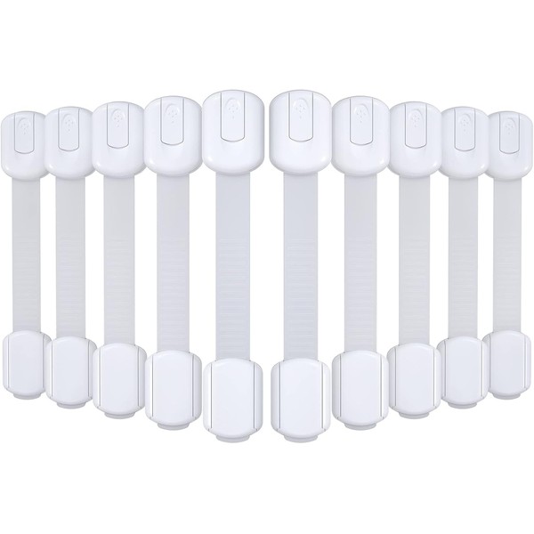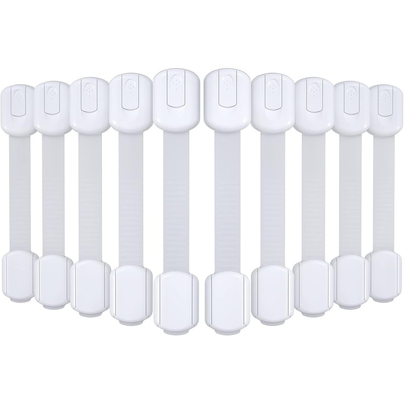 - Childproof Drawer Latches for All Kinds of Cabinets and Drawers: These child safety locks are multipurpose and work well on various items from cabinets and drawers to appliances. The extra-long length strap locks allow for flexibility and let you latch around any cabinet styles and shapes, which help you to keep babies and toddlers away from unwanted devices like drawers, cupboards, refrigerators, washing machines, ovens, toilet and trash cans.