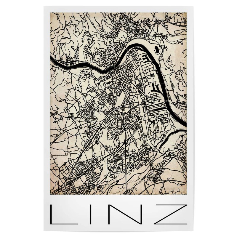 artboxONE Poster Retro Map Linz Vintage Artist David Springmeyer, 30x20 cm