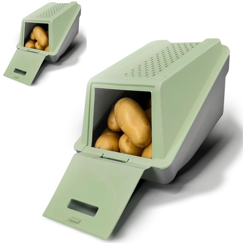 - Stackable and space-saving. The potato and vegetable storage box is perfectly stackable to create maximum storage space. Ideal for small kitchens or storage rooms