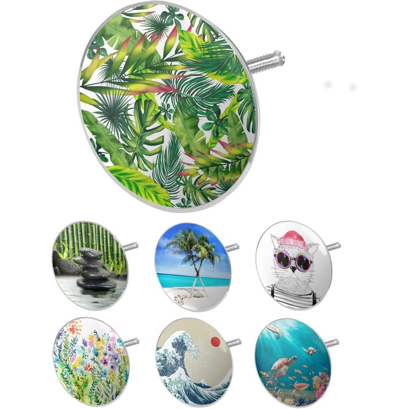 arteneur® Universal Bath Plug with Jungle Motif, Triple Seal, Adjustable, Rustproof, Extra Heavy for Stable Hold, Plug Bath Accessories