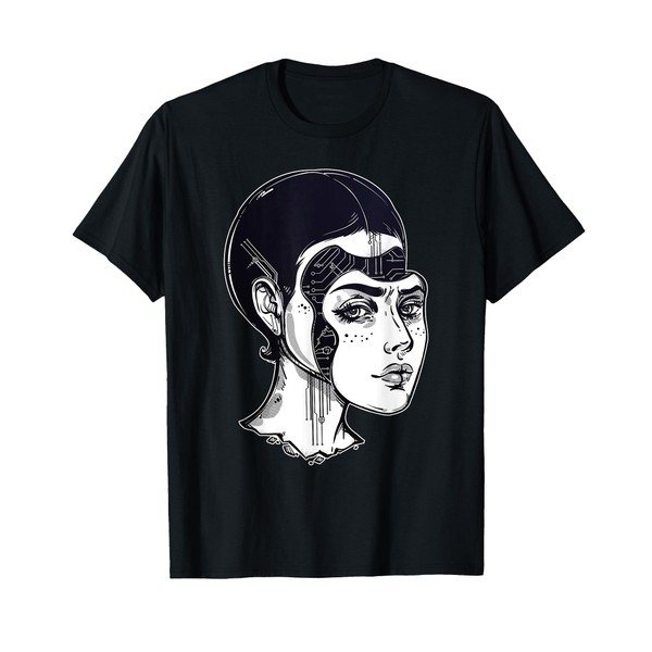 - Stay Weird T-Shirt of cyborg girl portrait in boho tattoo style. Perfect for alien android anime art cybernetic doll fiction glitch futurism robotic science surreal tech design lover. Perfect gift as a halloween tshirt.
