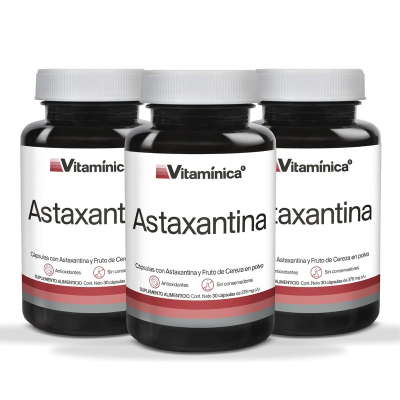 Astaxantina | Vitamínica | 90 cápsulas de 376 mg c/u | 3 meses |Sin conservadores