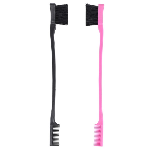 Aswalling Double Sided Edge Control Hair Brush Comb Combo Pack 2 Pieces Pink and Black