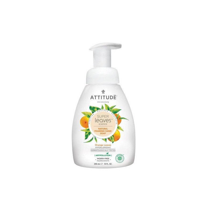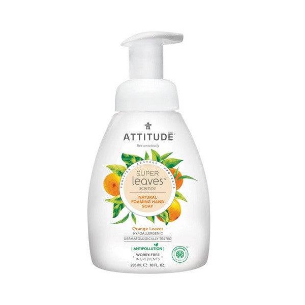 Attitude Super Leaves Orange Leaves Natural Foaming Hand Soap is enriched with orange leaf extract to refresh and revive your skin.* It also contains moringa seed extract to limit the adhesion of pollutants and detoxify the skin.*