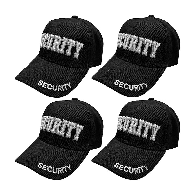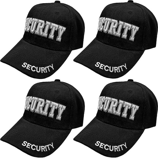 Auhafaly 4 Pack Security Hat Baseball Ball Cap Black Embroidered Adjustable 100% Cotton