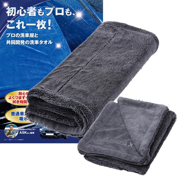AURAX 【洗車系インフルエンサー監修】 洗車 タオル 『中判でも一発拭き取り!』 中判&小判2枚セット(超吸水・普通車1〜2台分) (グレー)