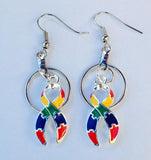 These autism awareness charms are in the shape of a tree where the leaves are colorful puzzle pieces. Each silver plated heart charm is approximately 7/8 inch by 5/8 inch.