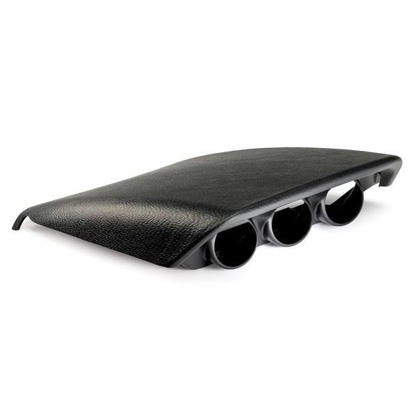 Mounts in center of dash between driver and passenger cowls and angles 3, 2 1/16 gauges towards the driver. Pebble grain matches dash pad, Silver face plate.