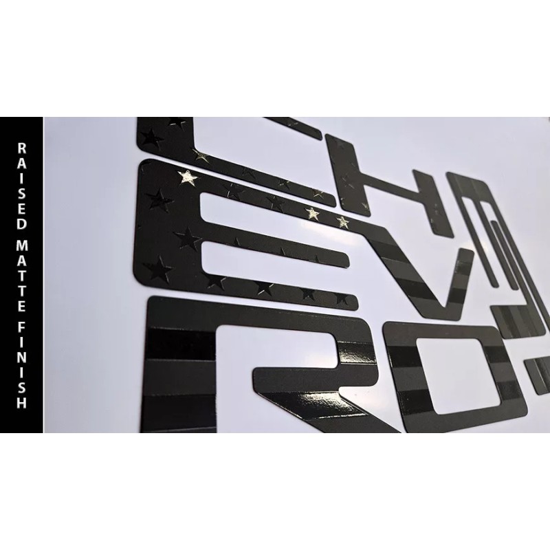 AUTOCARIMAGE Tailgate raised letters fits SILVERADO 2019 2024 2025 GLOSSY & MATTE BLACK FLAG